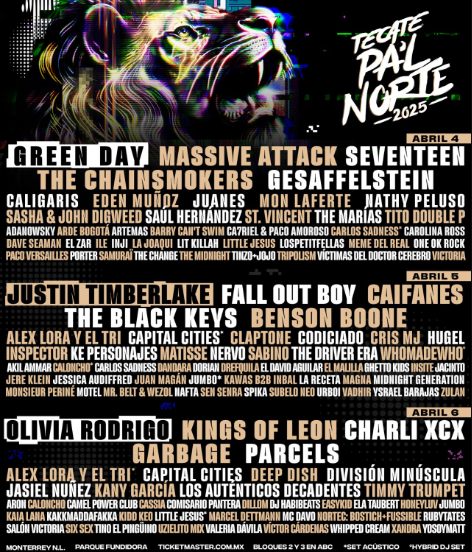 El Tecate Pa’l Norte 2025 se llevará a cabo los días 4, 5 y 6 de abril en el Parque Fundidora de Monterrey, Nuevo León. ¡No te quedes fuera de esta gran fiesta musical!