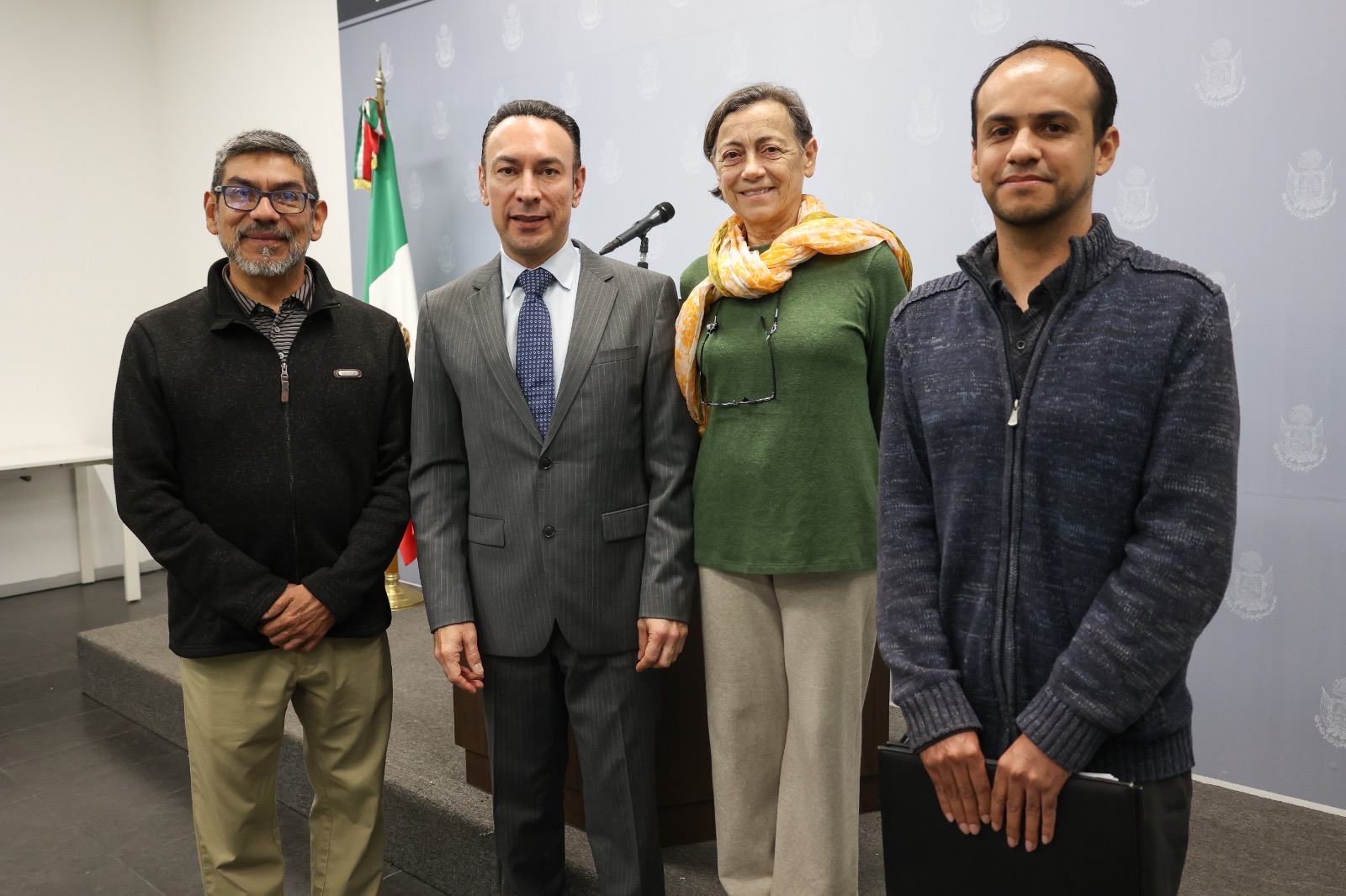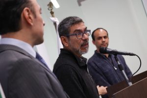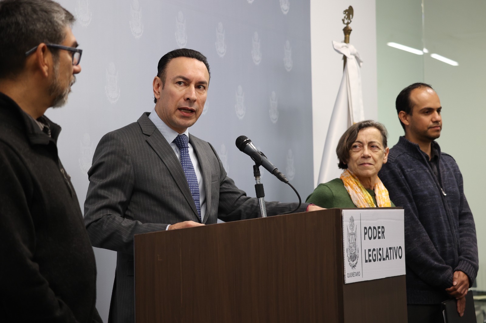 En conferencia de prensa, Arturo Maximiliano García estuvo acompañado por el vocero del Frente Queretano por el Derecho a la No Discriminación, Walter López; Juan Carlos Valle, de Saca La Bici; y Estefanía Bondi, de Coalición Ciudadana por la Movilidad Sostenible (QM21).