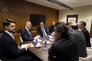 Como parte de la agenda de trabajo por España, el gobernador Mauricio Kuri González sostuvo una reunión con directivos del Banco Santander en la sede principal del corporativo, encabezada por el vicepresidente, Juan Manuel Cendoya.