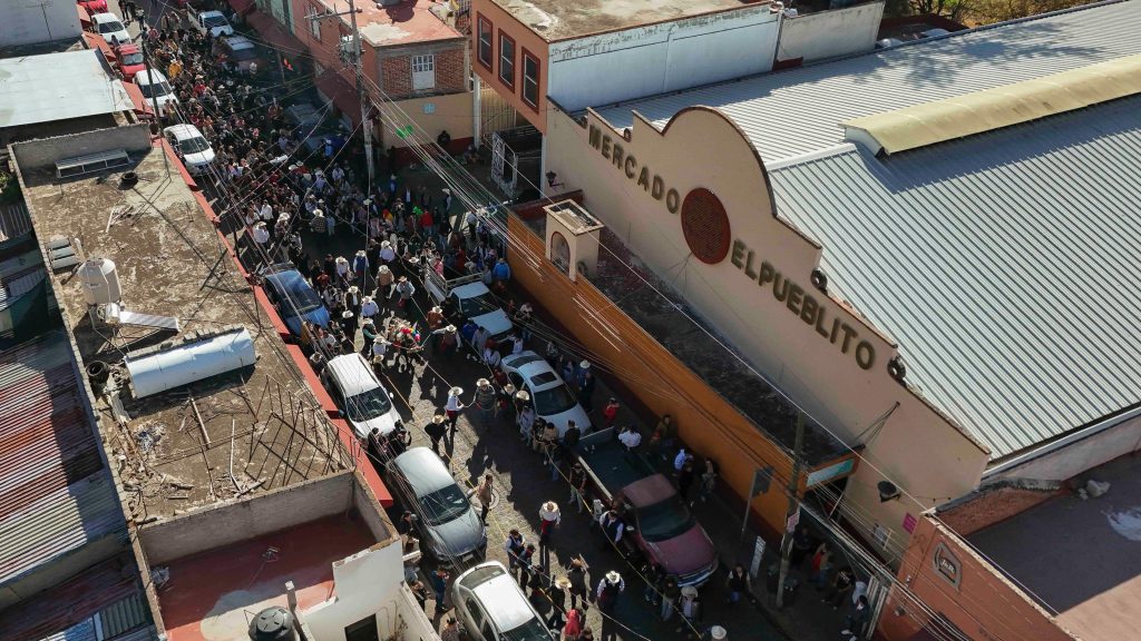 En la entrada de la Basílica de Nuestra Señora de El Pueblito, el padre guardián del recinto, Fray Antonio Miranda Arroyo, realizó la bendición de los bueyes llevados por las corporaciones entrante y saliente, acompañado del rector de la Basílica, Fray Francisco Salinas Osornio; el párroco de San Francisco Galileo, Pbro. Jaime Gutiérrez, representantes de las corporaciones y mayordomías, así como miembros del Gabinete Municipal y regidores.