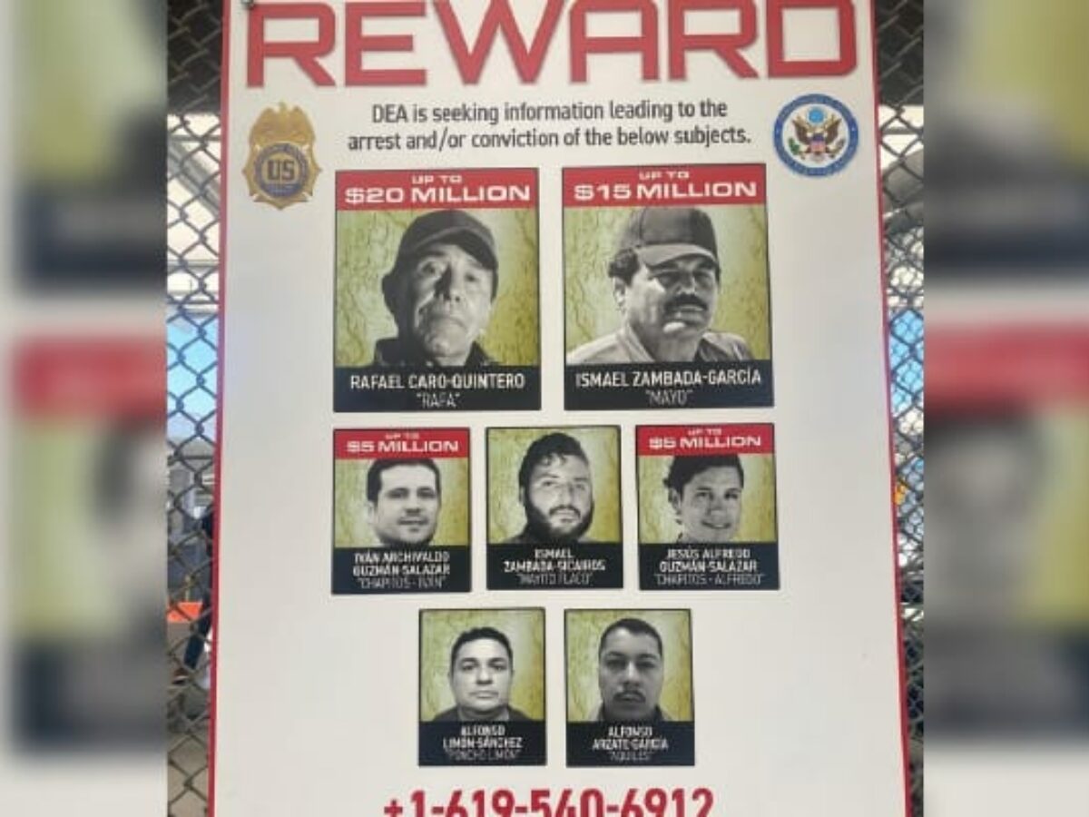 La Agencia Antidrogas de Estados Unidos, DEA, publicó un póster en el que ofrece recompensas millonarias por los líderes del Cártel de Sinaloa, por un total de más de 45 millones de dólares.
