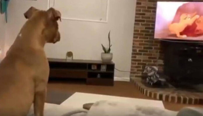 Josh Myer, un estadounidense de Chattanooga, muestran como su perrita Luna de cuatro meses, se emociona y llora al ver la muerte de Mufasa, uno de los protagonistas de la película.