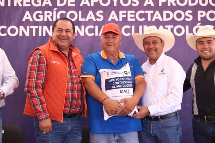 Debido a que la sequía no permitió cosechas de temporal en el ciclo de siembra de 2021, el titular de la Secretaría de Desarrollo Agropecuario (SEDEA), Rosendo Anaya Aguilar, entregó 123.30 toneladas de grano de maíz para consumo humano en beneficio de 464 familias dedicadas a la producción de alimentos en el campo.