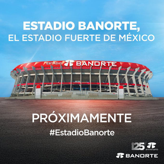 “¡Llega el estadio Banorte! Estamos orgullosos de impulsar la modernización del estadio icónico de México”, publicó la cuenta oficial de Banorte en redes sociales junto a una imagen del Coloso de Santa Úrsula con los colores y símbolos del grupo financiero.