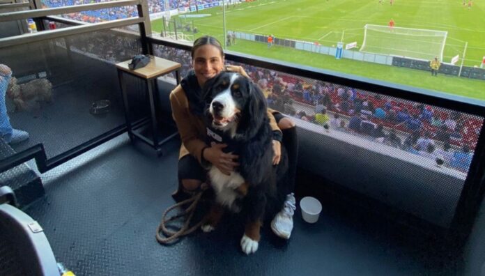 Los aficionados celebraron la experiencia de poder asistir a un partido de futbol con el acompañamiento de sus canes.
