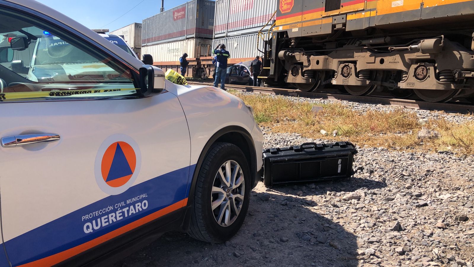 Personal de emergencia atiende el reporte ingresado a través de la linea 9-1-1 y que según los primeros reportes, la unidad intentó ganarle el paso al tren.