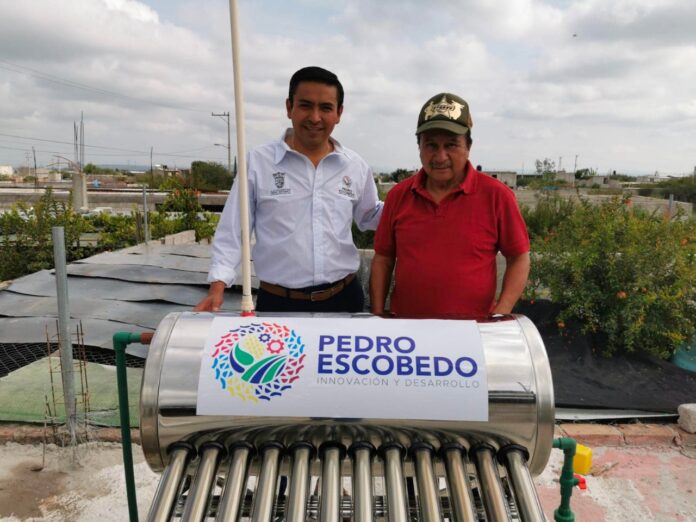 El alcalde del municipio de Pedro Escobedo, Amarildo Bárcenas, acompañado de secretarios, directores, regidores y beneficiarios, encabezó en la Col. Haciendas y Col. Ampliación Francisco Villa, el recorrido de entrega y supervisión de apoyos sociales a través del programa “Contigo Acción y Desarrollo para tu Familia”, donde 20 habitantes se beneficiarán a través de la entrega e instalación de calentadores solares.