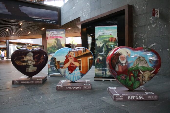 Cada uno de los corazones monumentales, comentó, fueron intervenidos por artistas plásticos locales y representa a un Pueblo Mágico de las entidades que conforman el Pacto Centro Occidente por el Turismo que son Aguascalientes, Guanajuato, Jalisco, San Luis Potosí, Zacatecas y Querétaro.