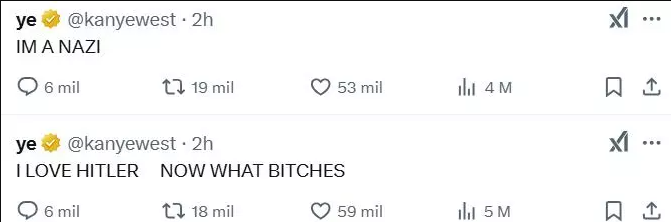 Este anuncio llega poco después de la polémica que West generó en X (antes Twitter) con una serie de publicaciones en las que se identificó como nazi, expresó su admiración por Hitler y compartió videos con contenido explícito. Ahora, además del escándalo mediático, enfrenta un nuevo proceso de divorcio.