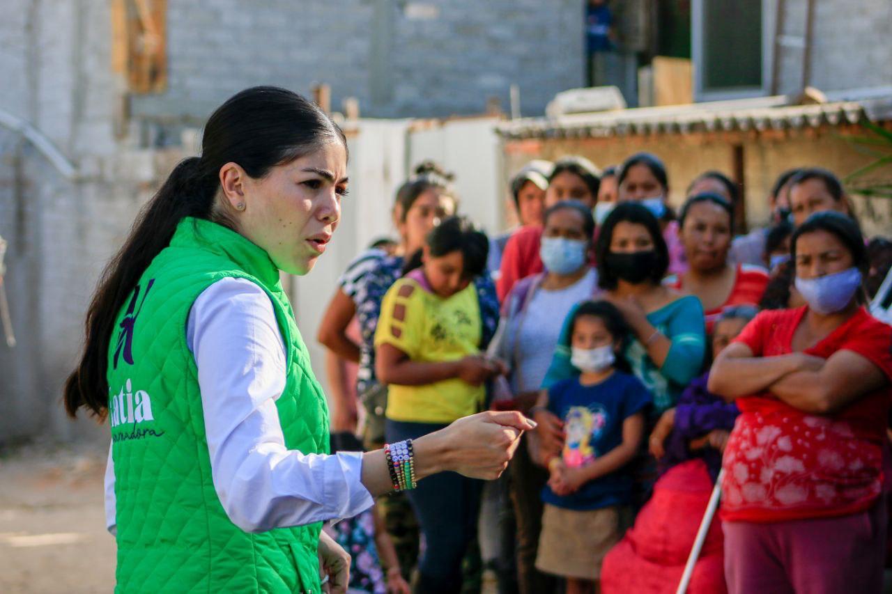 La candidata a la gubernatura de Querétaro por el Partido Verde Ecologista de México (PVEM), Katia Reséndiz, visitó el municipio de San Juan del Río, donde presentó su propuesta Proamor, diseñada para el apoyo a las mujeres cabeza de familia.