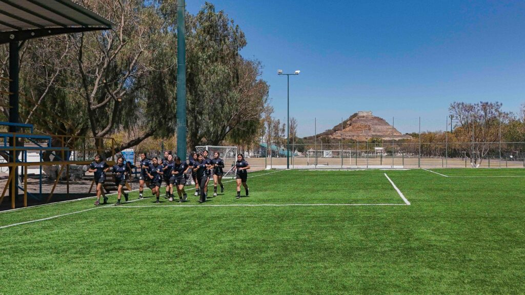 La rehabilitación de la cancha de fútbol 11 contempló la preparación del espacio deportivo para la instalación de pasto sintético, con una inversión superior a un millón 503 mil pesos. El campo cuenta con una superficie de más de seis mil 700 metros cuadrados y fue equipado con pasto sintético de alta calidad, arena y caucho para amortiguación.