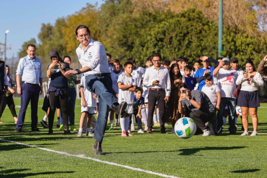 Durante el evento, el alcalde destacó que esta obra fue posible gracias al trabajo coordinado entre el Gobierno del Estado y el Municipio, con el objetivo de fortalecer la infraestructura deportiva y ofrecer espacios dignos para el desarrollo de niñas, niños, jóvenes y familias.