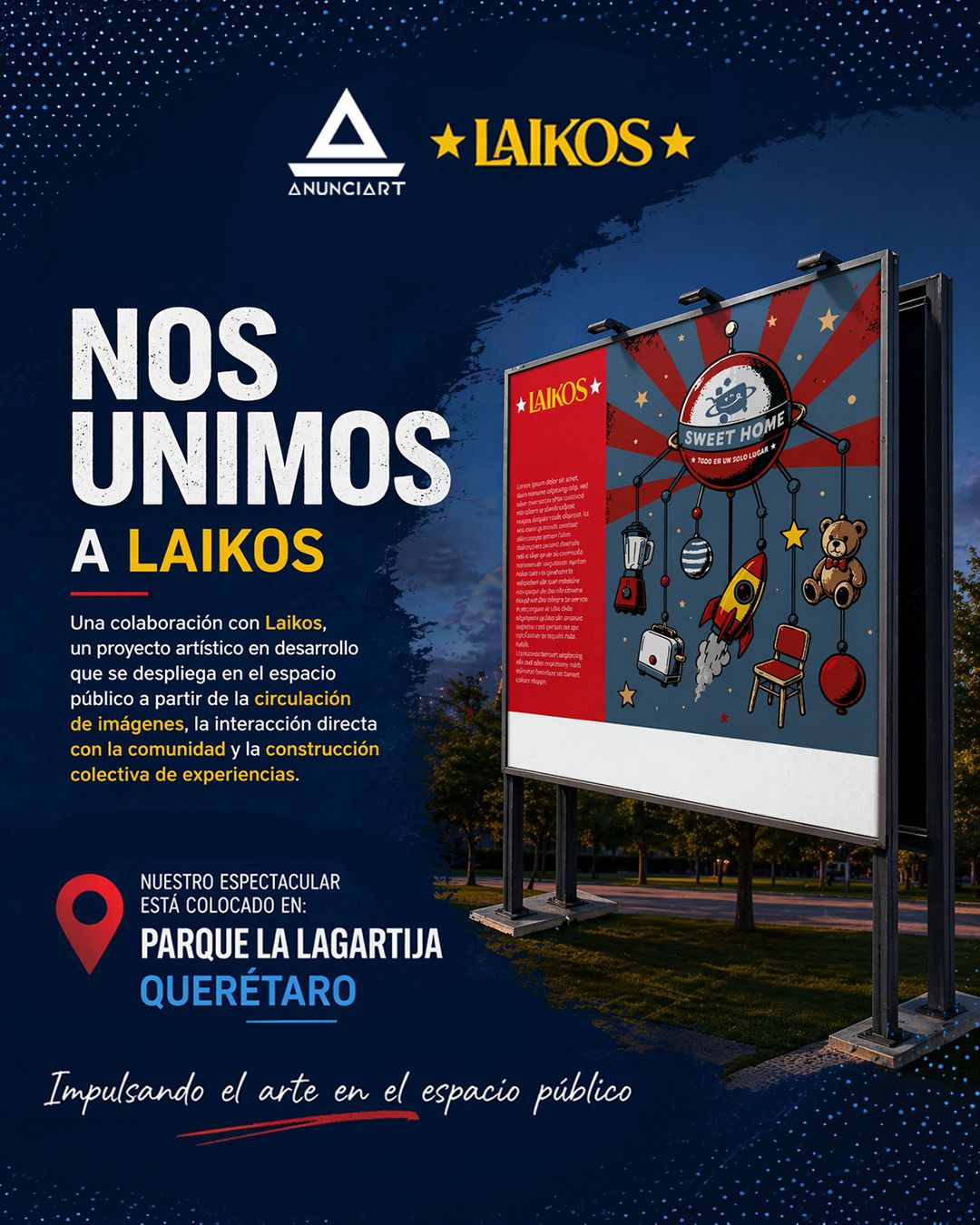 El proyecto artístico Laikos continúa consolidándose como una propuesta innovadora de intervención urbana con la instalación de una nueva pieza en el Parque La Lagartija en Querétaro. En colaboración con Anunciart, esta iniciativa busca activar el espacio público a través de la circulación de imágenes y la participación directa de la comunidad.