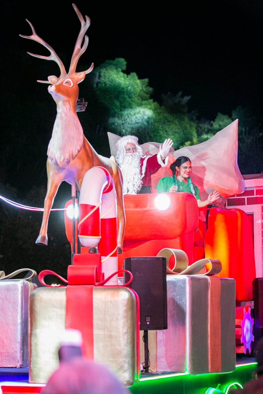 El gobernador Mauricio Kuri González atestiguó el Megadesfile Alegría en el municipio de Querétaro, evento de unión y prosperidad para celebrar la Navidad junto a las y los queretanos, quienes salieron a la avenida Constituyentes a presenciar el paso de la caravana navideña que incluyó a varios personajes encabezados por los protagonistas de varias películas y caricaturas.