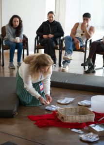 La instalación busca incentivar la interacción con un sentido experiencial de las personas con la obra, pues fue pensada para realizar activaciones y crear impresiones a partir de los grabados de las piedras; en la sesión, con la guía del artista, las y los participantes activarán las piezas utilizando la técnica del frottage con papel bond blanco y carboncillo.