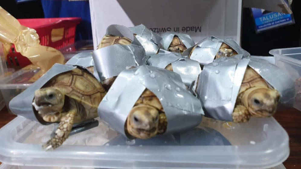 Más de 1500 tortugas vivas fueron encontradas dentro de unas maletas abandonadas. Esto ocurrió en el Aeropuerto Internacional Ninoy Aquino de Manila. Las pequeñas especies estaban amarradas con cinta adhesiva y se supo que todo el equipaje provenía de un vuelo de Hong Kong.