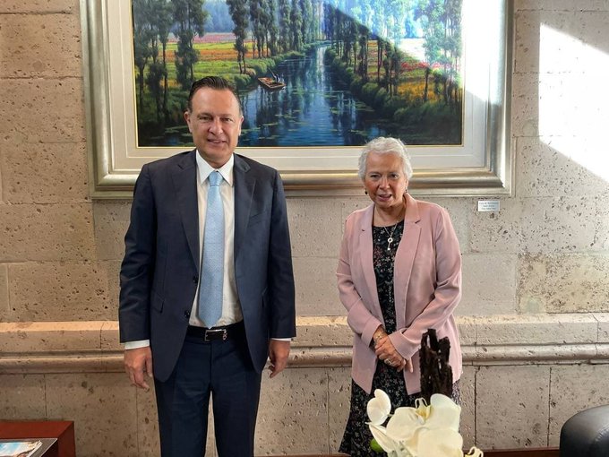 El gobernador electo de Querétaro, Mauricio Kuri González, sostuvo una reunión con la secretaria de Gobernación, Olga Sánchez Cordero.