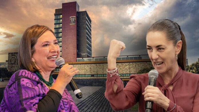 La Universidad Nacional Autónoma de México (UNAM) informó que ni Xóchitl Gálvez Ruiz ni Claudia Sheinbaum Pardo, aspirantes a candidatas presidenciales, incurrieron en plagio de su tesis profesional.