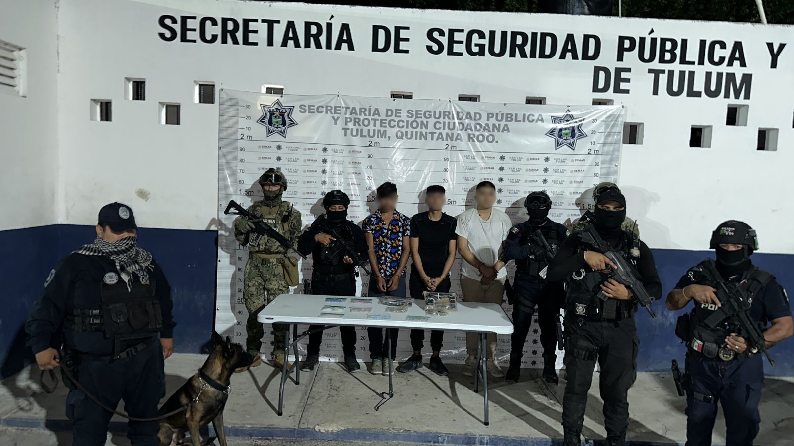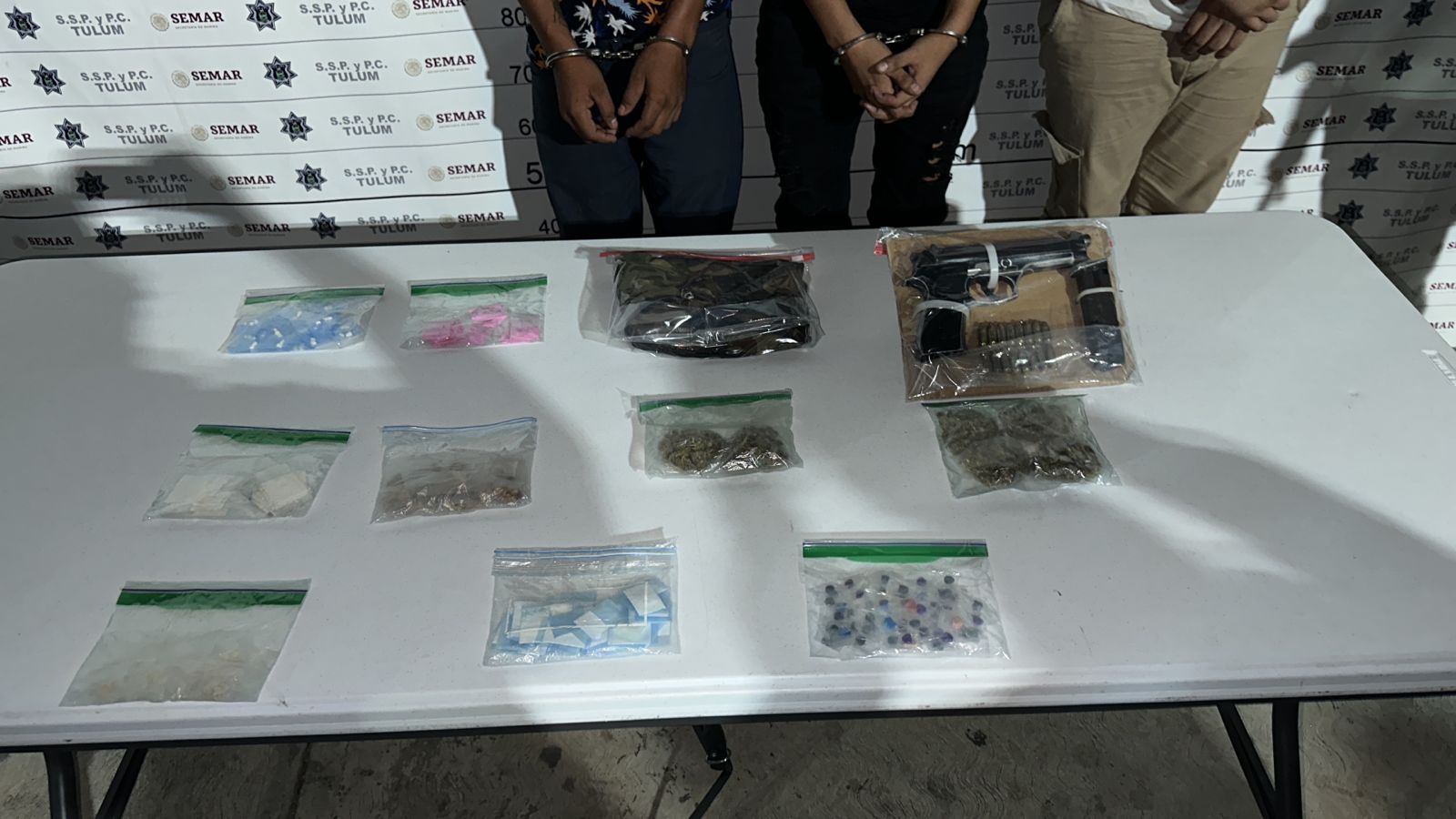 Tres presuntos narcomenudistas fueron detenidos la noche de ayer en Tulum, como resultado de un operativo entre las fuerzas de la mesa de seguridad de los tres órdenes de Gobierno. Los masculinos puestos a disposición de la Fiscalía General del Estado llevaban consigo un arma de fuego y más de un centenar de dosis de sustancias ilícitas que pretendían distribuir.