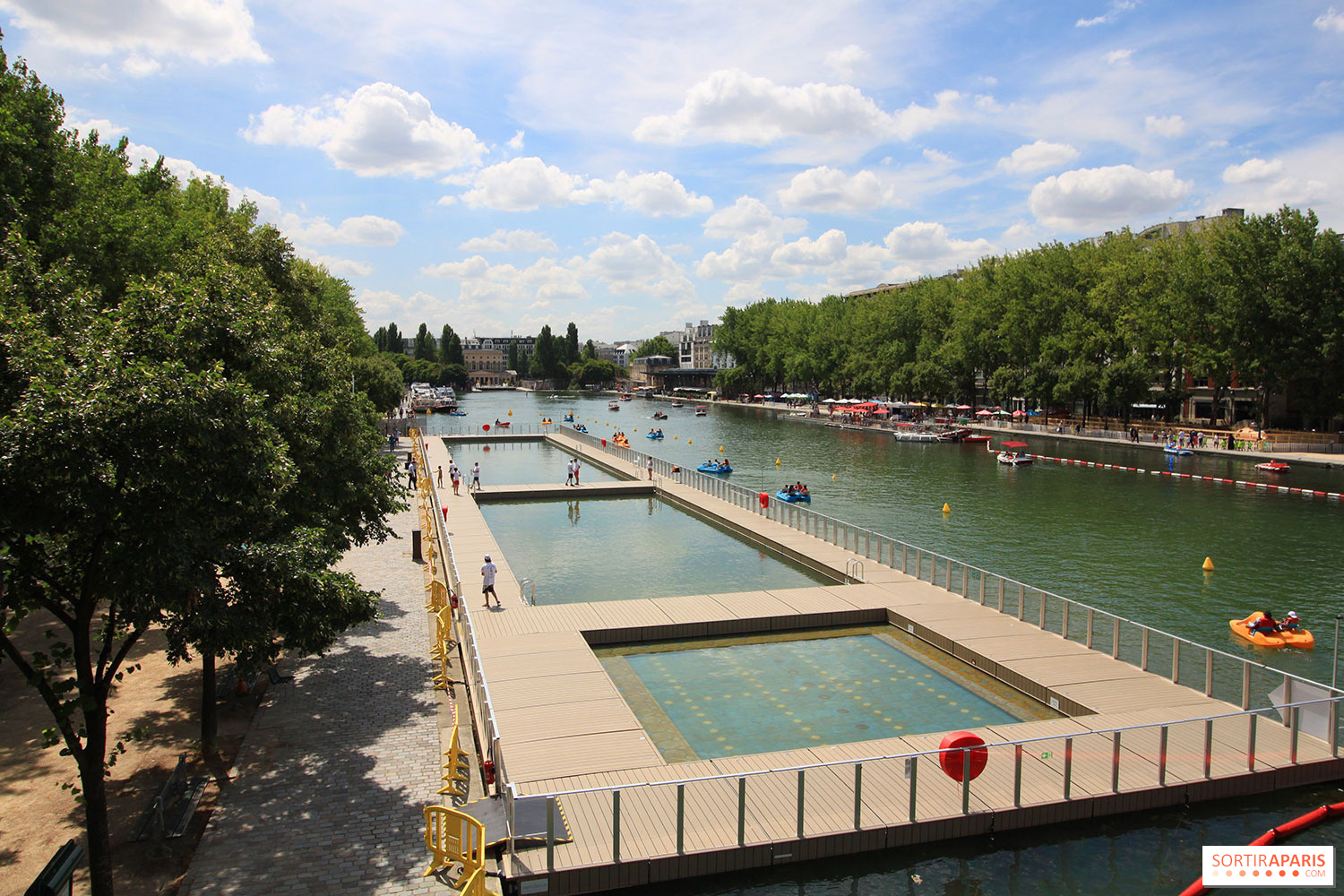 Situado al noreste de la capital, el Bassin de la Villette es la mayor masa de agua artificial de París. Aquí es donde se concentran las principales actividades acuáticas y las famosas piscinas flotantes. Con diferentes profundidades, son seguras para niños y personas con movilidad reducida. Se espera que en 2026, el horario de las piscinas sea de 11:00 a 20:30 horas.
