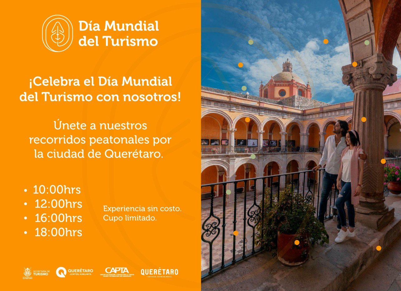 Se extiende una invitación a todos los queretanos y visitantes, para que este martes 27 se mantengan pendientes de las redes sociales de la Secretaría de Turismo y participar en este Día Mundial del Turismo 2022.