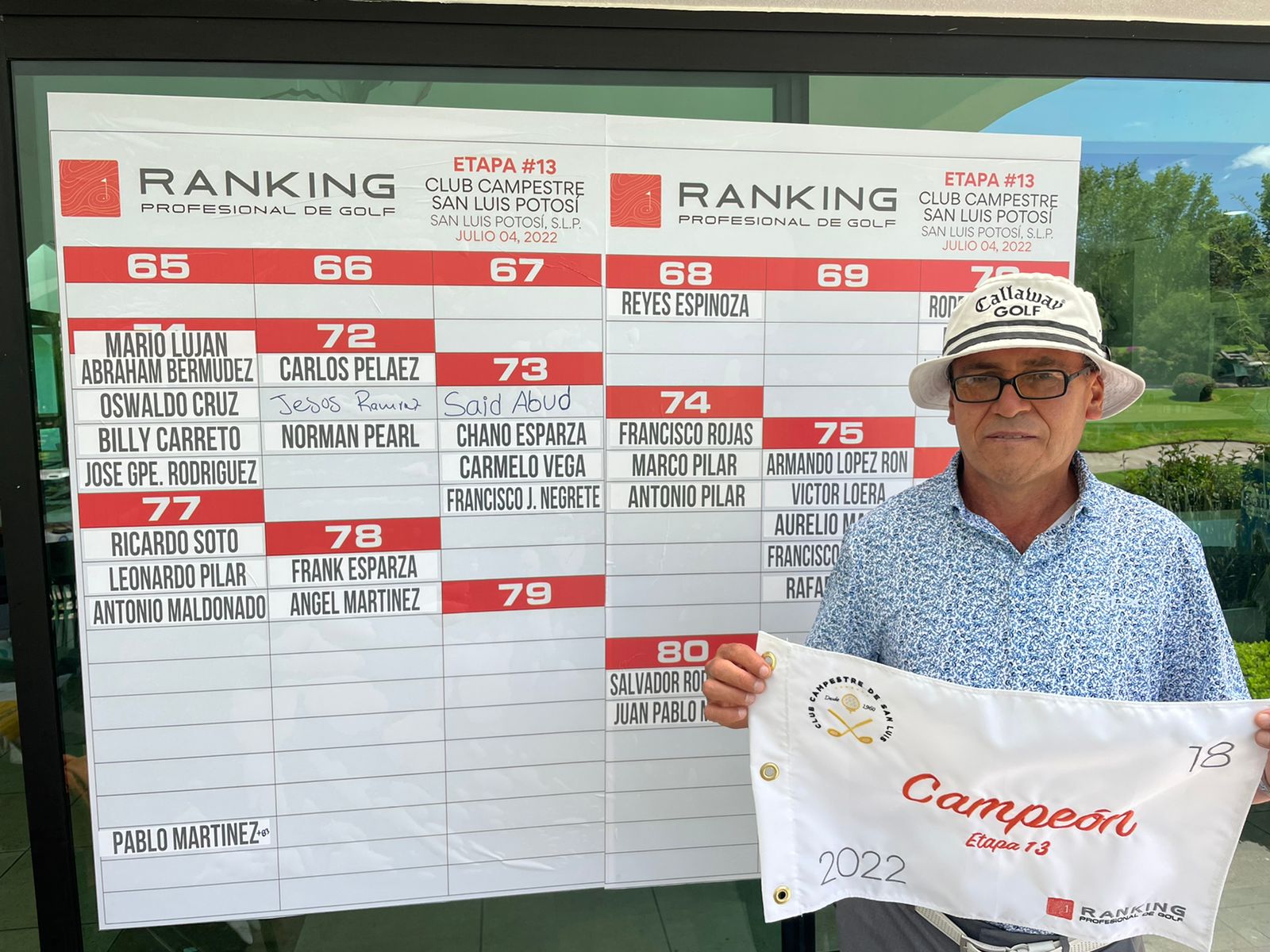 El Ranking Profesional de Golf estrena campeón gracias a Reyes Espinoza, de Fresnillo, quien se adjudicó la etapa 13 jugada en el bello y retado campo del Campestre de San Luis Potosí. Espinosa necesito de 68 golpes para adjudicarse título y hacer su debut como ganador del Ranking. Reyes sorprendió a los locales Mauricio Cue y Ricardo Ruiz, quienes junto a Rodrigo Miralrio, de La Loma, empataron en la segunda posición a dos golpes del ganador.