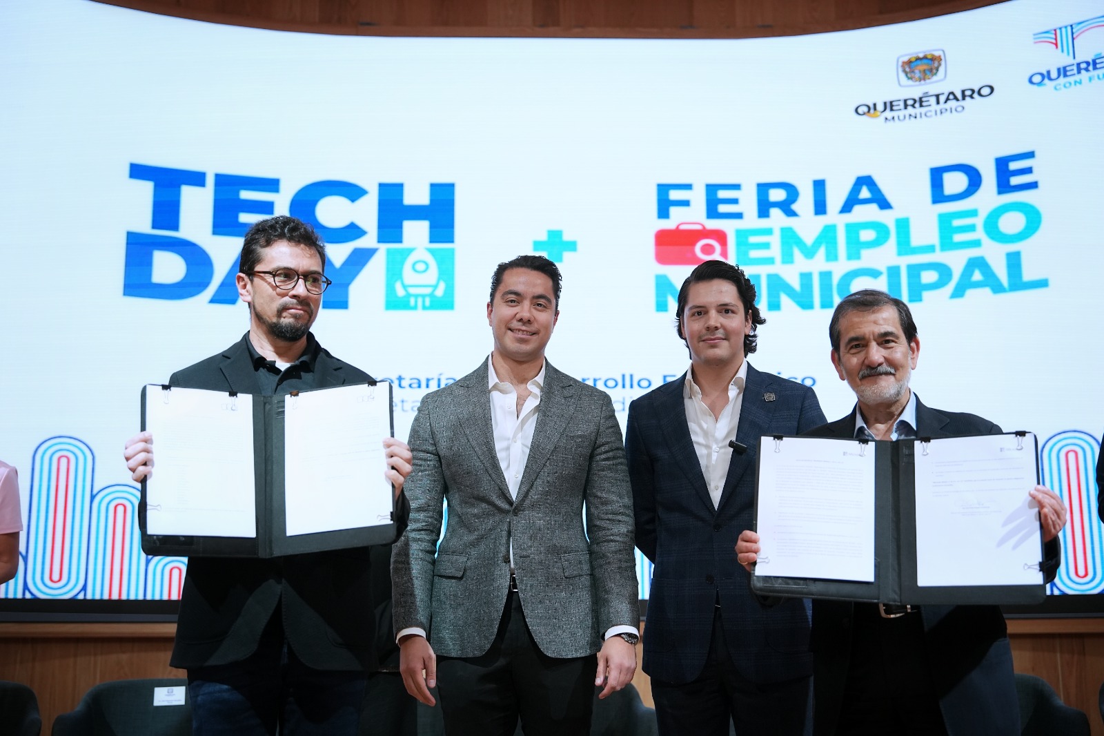 Durante la ceremonia del TechDay y la Feria del Empleo se dio a conocer que las cartas de intención son para beneficiar a jóvenes estudiantes, emprendedores, empresarios y desarrolladores mediante capacitaciones en inteligencia artificial y nuevas tecnologías para llegar con orden y con rumbo al Querétaro del futuro.