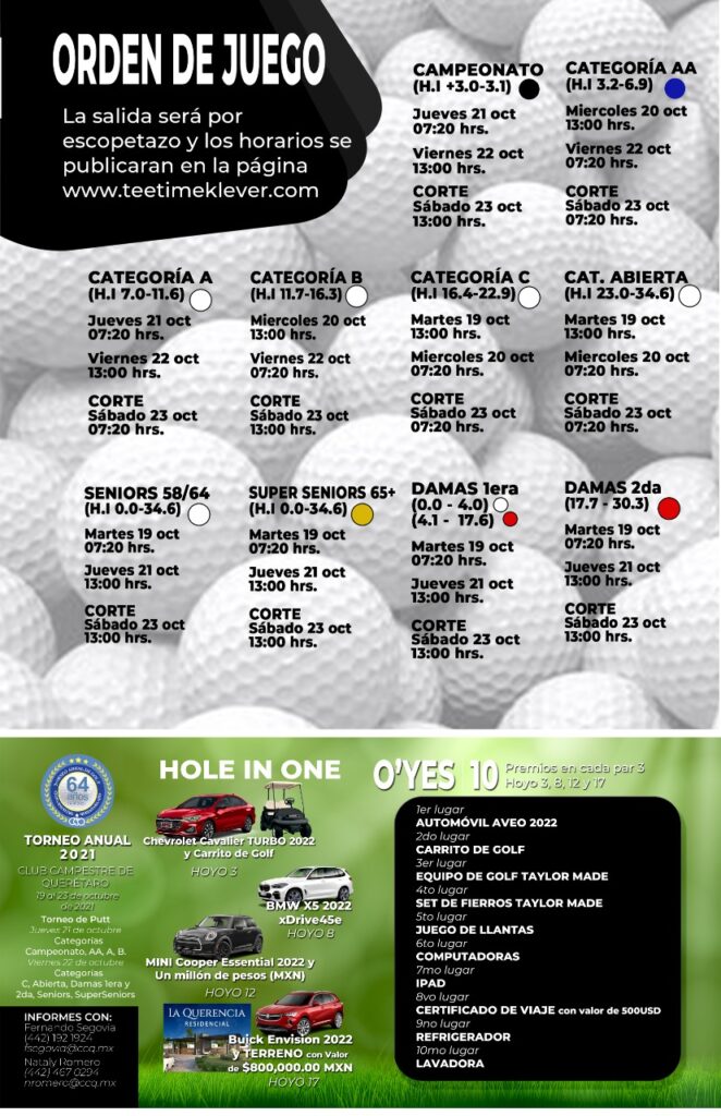 DeportesEntretenimientoLo más nuevoLo más relevanteTorneo de Golf Anual CampestrePor Christopher Abarca Alcaraz - octubre 20, 20210978FacebookTwitterWhatsAppEmailCopy URL El torneo comenzará el 21 de octubre, la salida, el escopetazo y toda la información será por escopetazo y los horarios se publicarán en la página.www.teetimeklever.com/Cualquier información puedes consultarla con Fernando Segovia: 442-192-1924.Te puede interesar:UPQ estrecha lazos con Aeroclúster de Querétaro