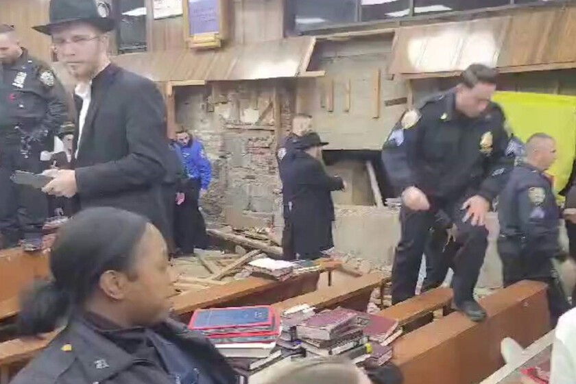 Incidentes se suscitaron en una sinagoga en Nueva York cuando las autoridades intentaron sellar un túnel subterráneo no autorizado. pic.twitter.com/NOuKgYhLm2