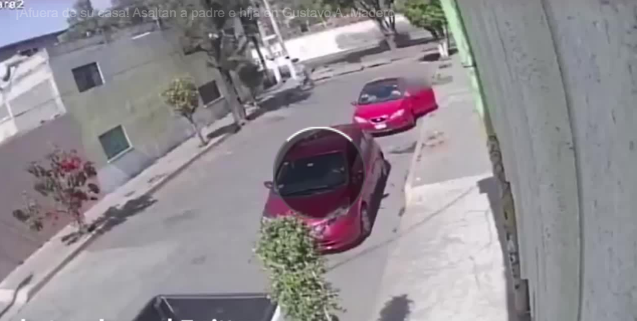 En la delegación Gustavo A. Madero, un padre con su hija sufrieron un asalto, afuera de su casa, sucedió apenas se habían bajado del automóvil, ellos regresaban del banco.