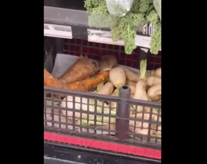 En el Soriana de Mixcoac, en Ciudad de México una rata se encontraba en el área de frutas y verduras comiendo camote.